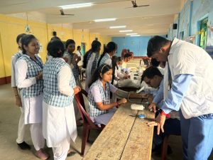 দুর্গাপুর দর্পণ, দুর্গাপুর: কিশোরীদের সামগ্রিক স্বাস্থ্যসুরক্ষা ও সচেতনতা বৃদ্ধির লক্ষ্যে পশ্চিম বর্ধমানের (Paschim Bardhaman) দুর্গাপুরের ডঃ বি.সি. রায় একাডেমি অফ প্রফেশনাল কোর্সেস-এর মেডিকেল ল্যাবরেটরি টেকনোলজি এবং অপটোমেট্রি বিভাগ যৌথভাবে আয়োজন করল এক দিনের বিশেষ স্বাস্থ্য শিবির। ১৭ নভেম্বর সকাল থেকে বিকেল পর্যন্ত বেনাচিটির ভিরিঙ্গি টি.এন. ইনস্টিটিউশনে অনুষ্ঠিত এই কর্মসূচিতে মোট ১১১ জন শিক্ষার্থী অংশ নেয়।