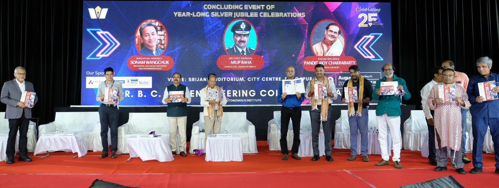 দুর্গাপুর দর্পণ, দুর্গাপুর: পশ্চিম বর্ধমান (Paschim Bardhaman) জেলার দুর্গাপুরের ডঃ বি সি রায় ইঞ্জিনিয়ারিং কলেজের (BCREC) রজতজয়ন্তী বর্ষের সমাপ্তি অনুষ্ঠানের আয়োজন করা হয় বুধবার। সিটি সেন্টারের সৃজনী প্রেক্ষাগৃহে আয়োজিত অনুষ্ঠানে প্রধান অতিথি হিসাবে উপস্থিত ছিলেন ম্যাগসাইসাই পুরস্কারপ্রাপ্ত, উদ্ভাবক, শিক্ষা সংস্কারক এবং পরিবেশবিদ সোনম ওয়াংচুক। এছাড়া এয়ার চিফ মার্শাল (অবসরপ্রাপ্ত) অরূপ রাহা বিশেষ অতিথি হিসাবে এবং পদ্মভূষণ শিল্পী পণ্ডিত অজয় চক্রবর্তী সম্মানিত অতিথি হিসাবে উপস্থিত ছিলেন।