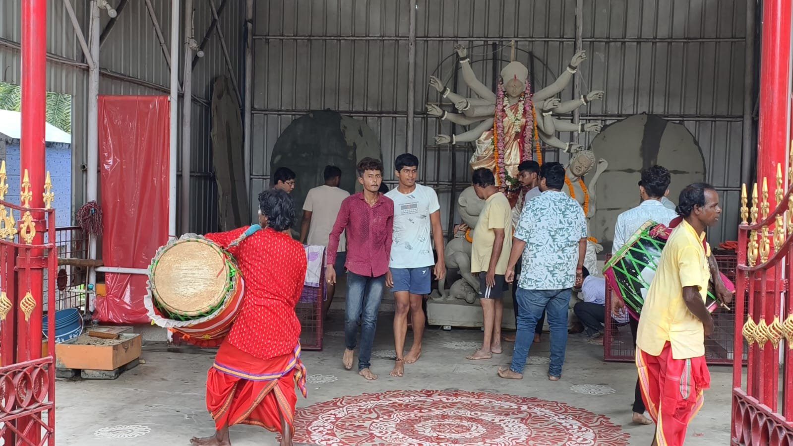 দুর্গাপুরের এমএমসির বি টু এলাকা। সকাল থেকে চরম উচ্ছ্বাস গোটা এলাকায়। অক্ষয় তৃতীয়ার দিন পাটা পুজো করে শুরু হয়েছে মূর্তি গড়ার কাজ। দুর্গাপুর স্টেশন বাজারে গড়ে তোলা প্রতিমা রথযাত্রার দিনে নিয়ে আসা হল এমএমসির বি টু এলাকার শ্রী শ্রী সর্বমঙ্গলা দুর্গা মন্দিরে। বরণ করে নিলেন এলাকার মহিলারা। এখানে পুরাণ মতে পুজো হয়। অষ্টমীর সন্ধিক্ষণে হয় সন্দেশ বলি।
