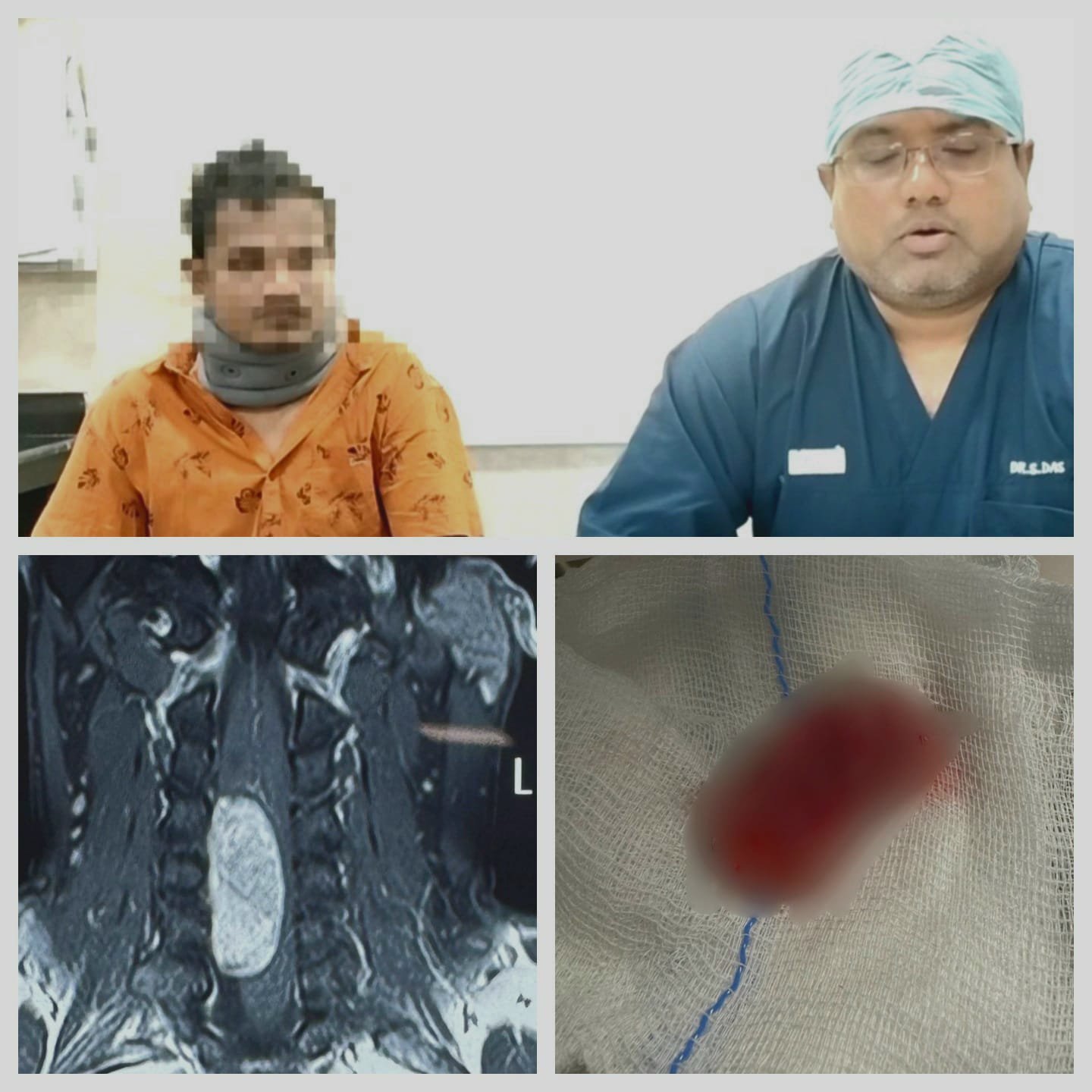 স্বাস্থ্য সাথী প্রকল্পের আওতায় তাঁকে মিশন হাসপাতালে ভর্তি করা হয়। পরীক্ষার পরে দেখা যায়, তাঁর সার্ভিকাল স্পাইনে একটি বড় ইন্ট্রা-ড্যুরাল এবং এক্সট্রা মেডুলারি টিউমার রয়েছে, যা তিনটি স্পাইনাল সেগমেন্টে বিস্তৃত। টিউমার অনেক বড় হয়ে গিয়েছিল এবং স্পাইনাল কর্ডকে মারাত্মকভাবে সংকুচিত করে নষ্ট করে দিচ্ছিল। ফলে অস্ত্রোপচারের বিষয়টি ছিল অত্যন্ত চ্যালেঞ্জিং! তাছাড়া, টিউমার এবং স্বাভাবিক টিস্যুর মধ্যের যে সীমানা প্রাচীর, সেটাও আর স্পষ্ট ছিল না। অর্থাৎ, স্বাভাবিক টিস্যুরও ক্ষতির চরম আশঙ্কা দেখা দিয়েছিল।
