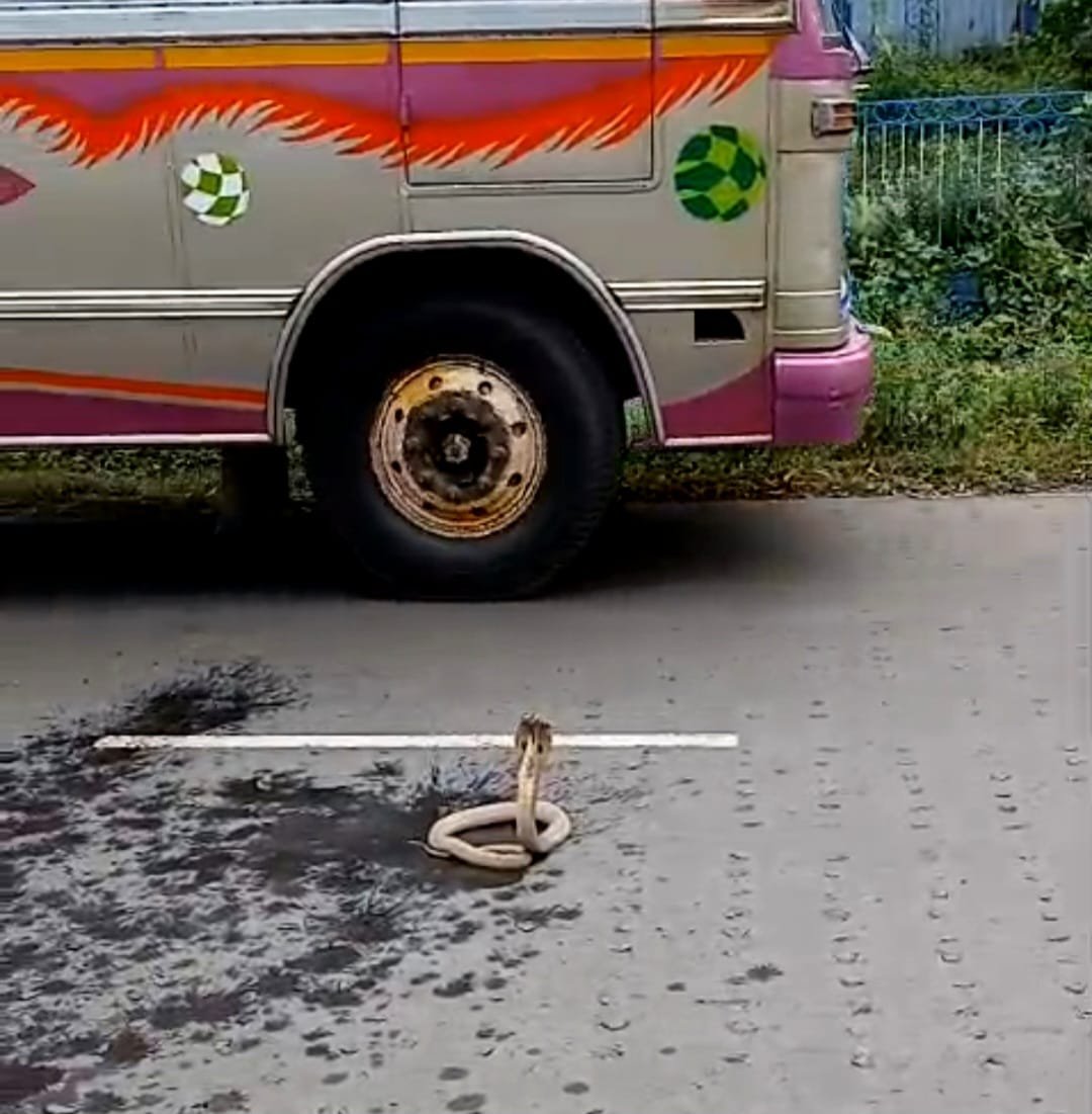 দুর্গাপুরের রাস্তায় ফণা তুলে দাঁড়িয়ে বিষধর সাপ, থমকে যানবাহন